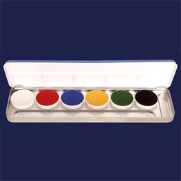 Paleta de metal con 6 colores de aquacolor en combinaciones distintas, también disponibles las paletas vacías para armar.