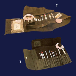 Estuche grande de cuero para guardar un amplio surtido de pinceles en dos hileras. Posee adicionalmente una división transparente para borlas, esponjas y otros accesorios. |